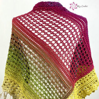Johanna ran the Dreamy Lattice CAL over six weeks in 2021. You can still purchase the pattern for this lovely triangular shawl which is crocheted in rows from side to side before adding the lacy tasseled border.