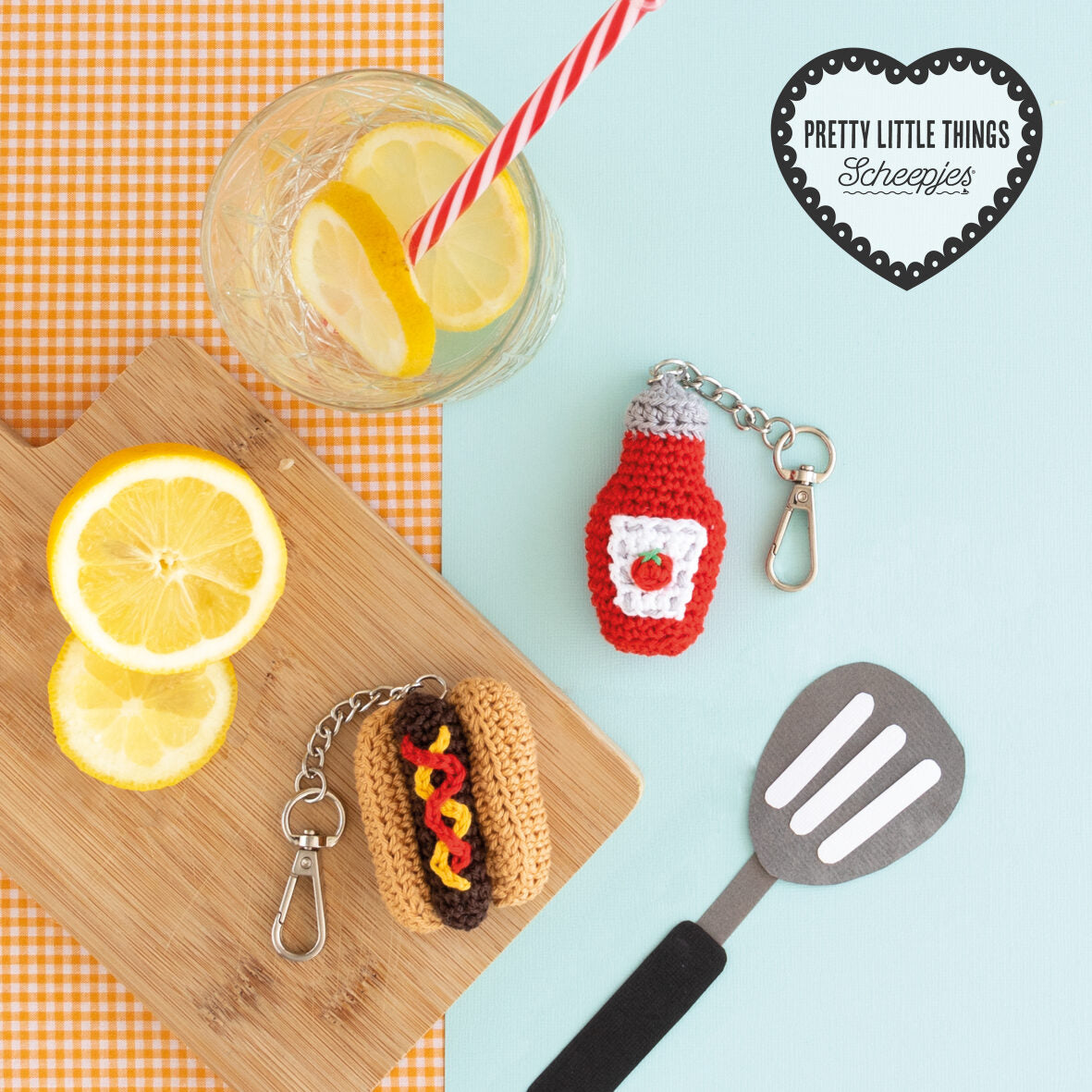 Hook a well-done hot dog, complete with mustard and ketchup! Or should you want to add your own favourite topping, there’s 114 delicious shades in the Scheepjes Catona range to choose from. These cute Amigurumi BBQ Keyrings designed by Sarah-Jane Hicks make it impossible for you to lose your keys at the end of the night. Why not crochet several of the bite-sized treats, chain them together and create fun barbecue bunting to decorate the outdoor space at your next event.