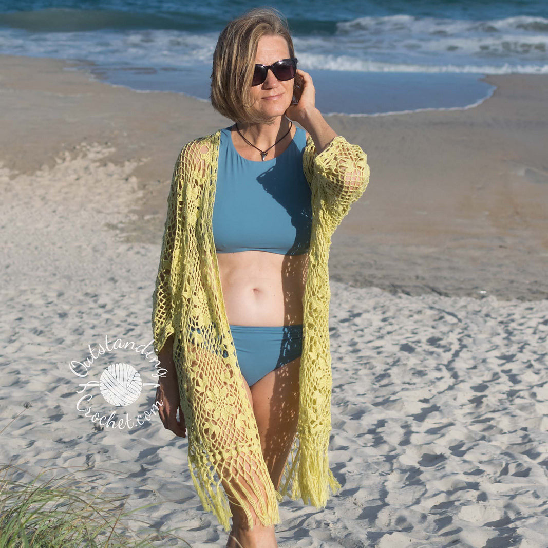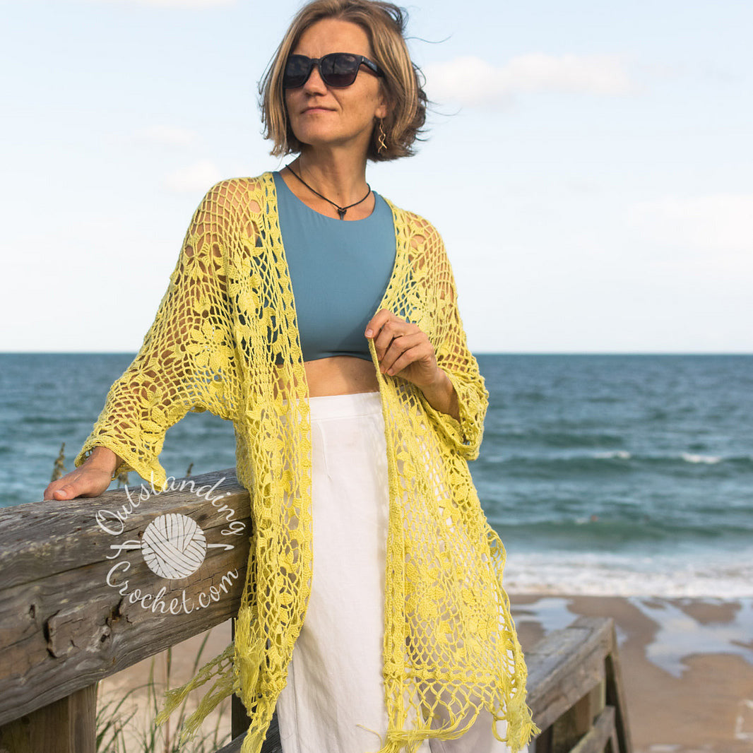 Maak kennis met het Garden Bohemia Robe Cardigan haakpatroon – een prachtige creatie gemaakt van delicate kantmotieven die tijdens het haken aan elkaar worden bevestigd en afgewerkt met een mooie franjerand. Dit kledingstuk is super veelzijdig en perfect voor talloze gelegenheden. Je vindt het patroon op Ravelry en Etsy .