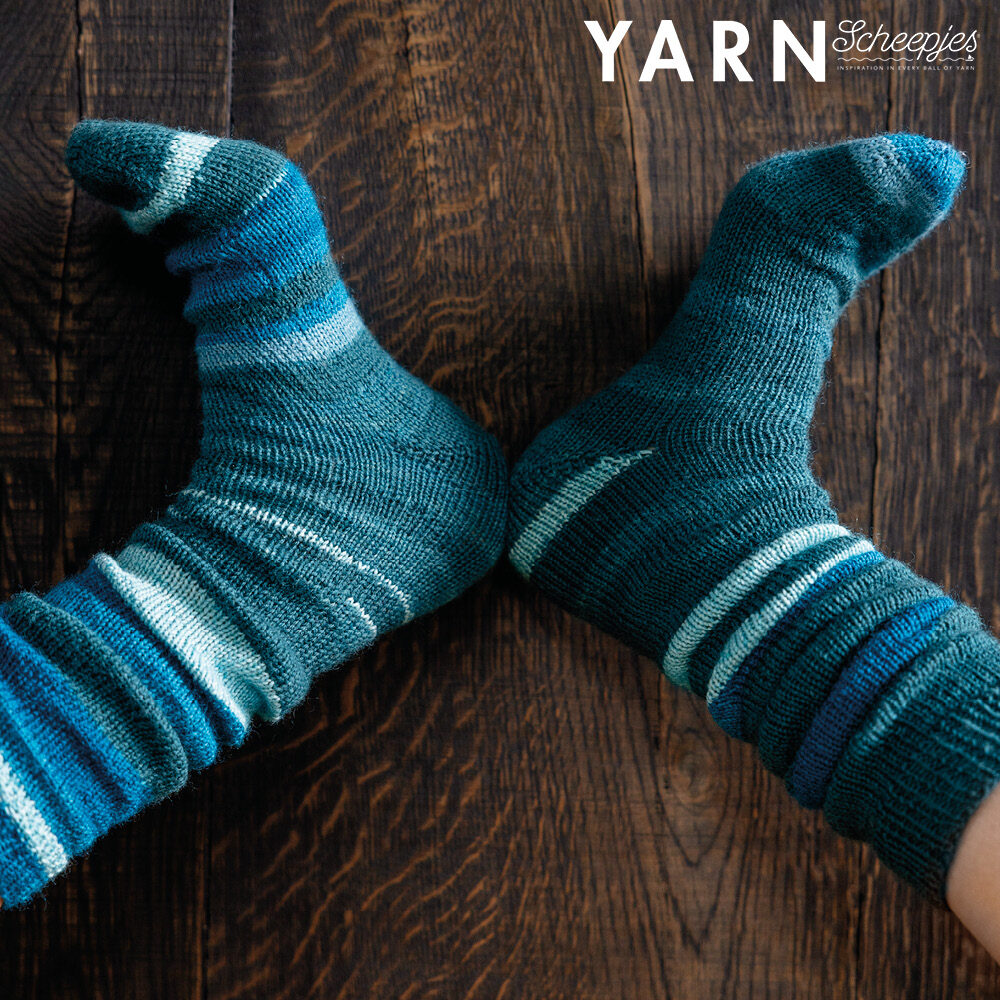 Een aangepaste versie van ons geliefde basispatroon voor sokken: de Lente-sokken bieden extra lengte voor meer warmte en een speels streepjespatroon dat je hoog kunt optrekken. Elk paar wordt van teen tot boord gebreid met ons Arcadia-sokkengaren – een duurzame mix van wol en polyamide. Het patroon combineert een zelfstrepend kleurschema met een effen kleur voor een opvallende look, waardoor links en rechts uniek van elkaar kunnen zijn als je dat wilt!