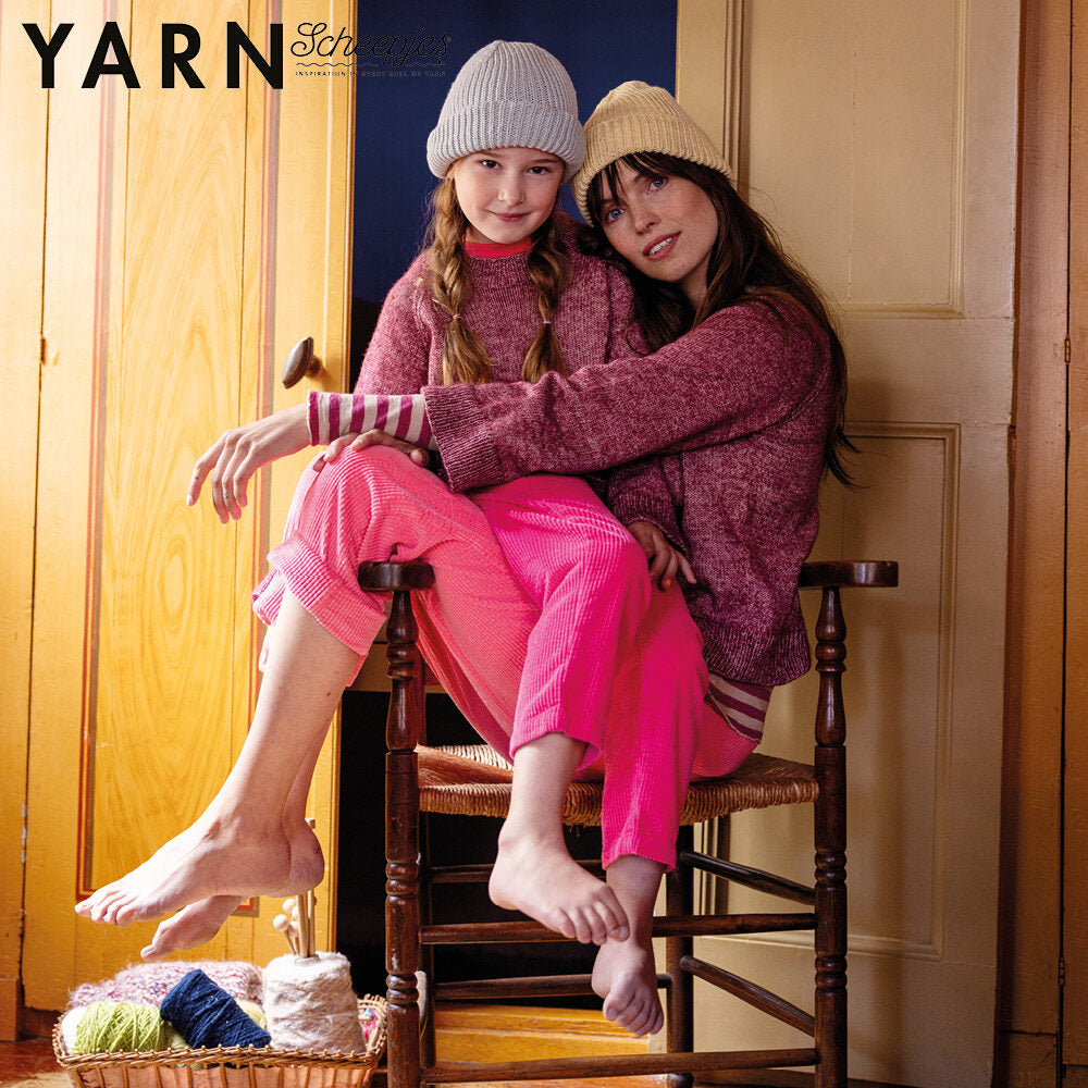 Eén patroon, één garen – perfect voor een ouder-kindduo om in bijpassende outfits voor de dag te komen. De trui voor het kind (maat XS) heeft een klassiek ontwerp met lange, rechte mouwen, zodat hij langer meegaat naarmate het kind groeit. De trui voor mama (maat M) heeft een modernere look met driekwartmouwen, ideaal om over een blouse te dragen.