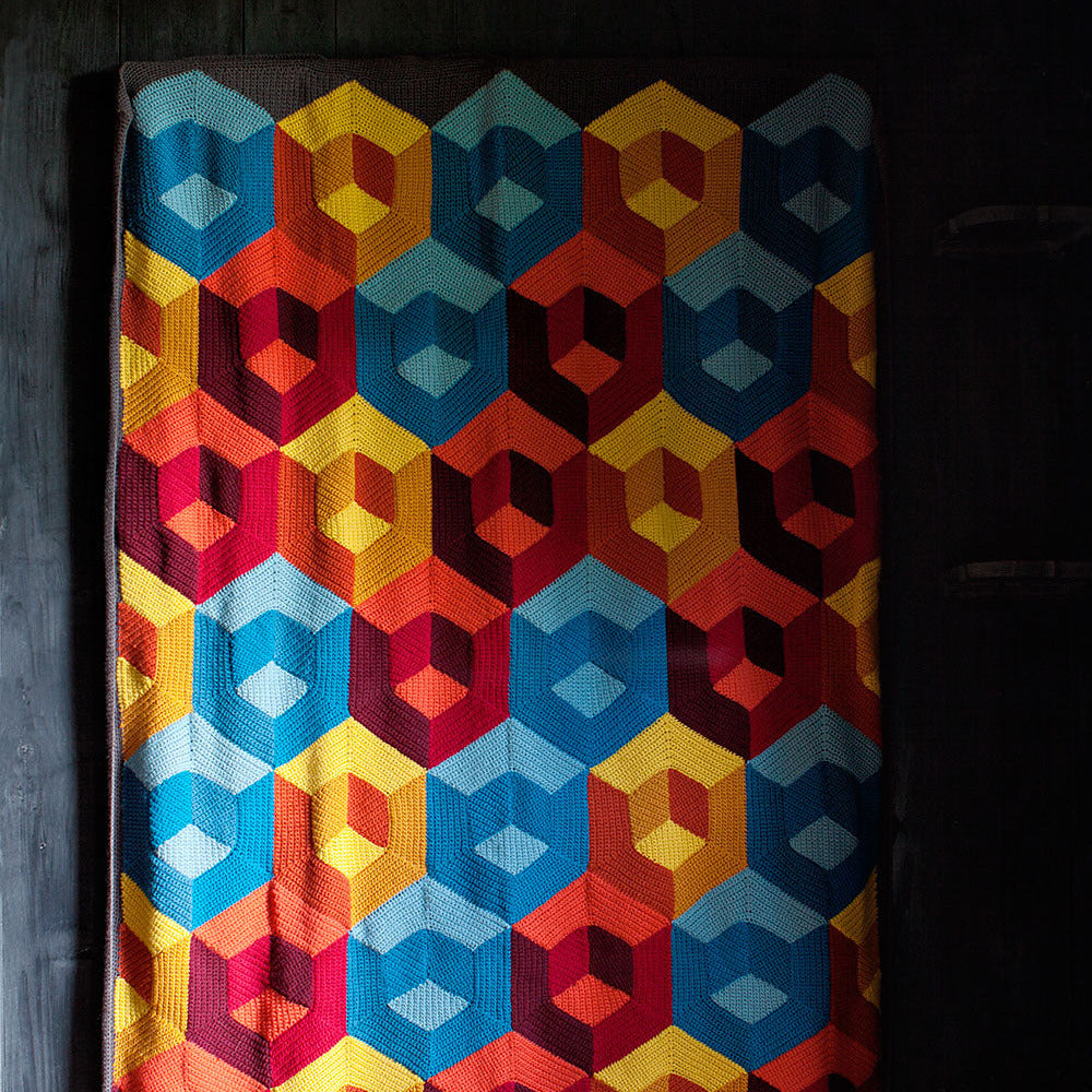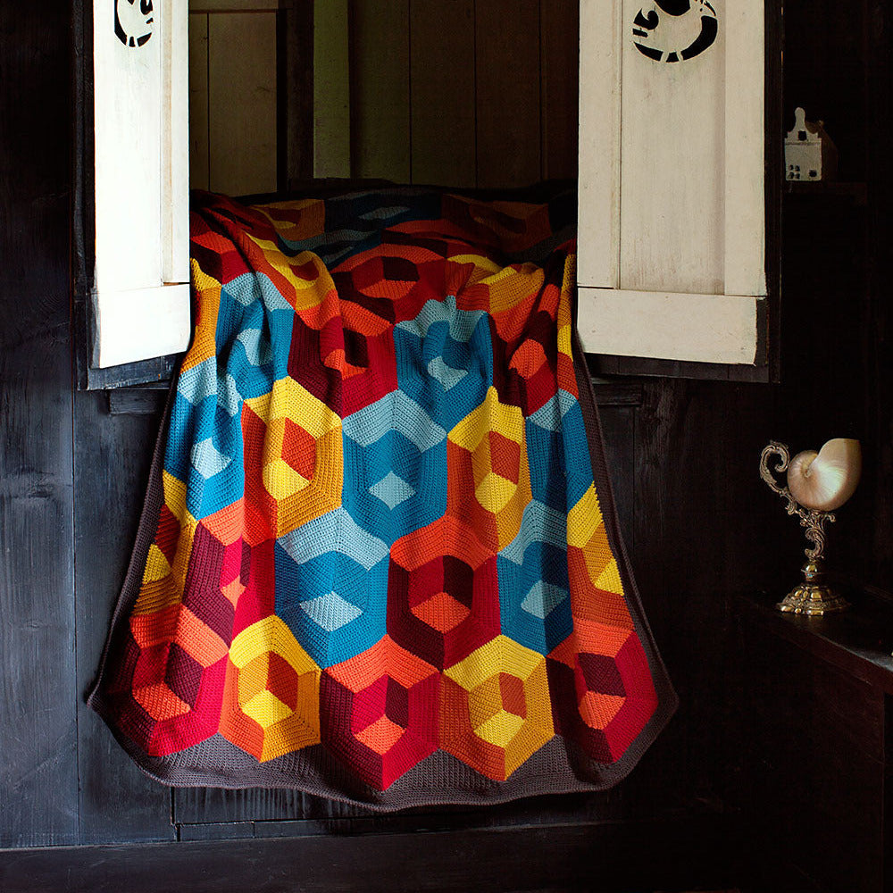 Wanneer Rembrandts kleuren de stijl van Escher ontmoeten, ontstaat deze illusionistische plaid. Gebruik hem om een ​​verrassend moderne twist aan elk interieur te geven.