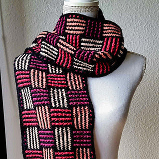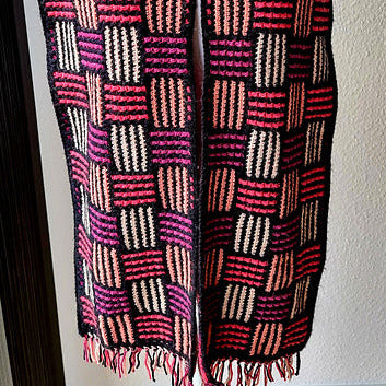 Sjaal met mozaïekpatroon in mandvlechtwerk