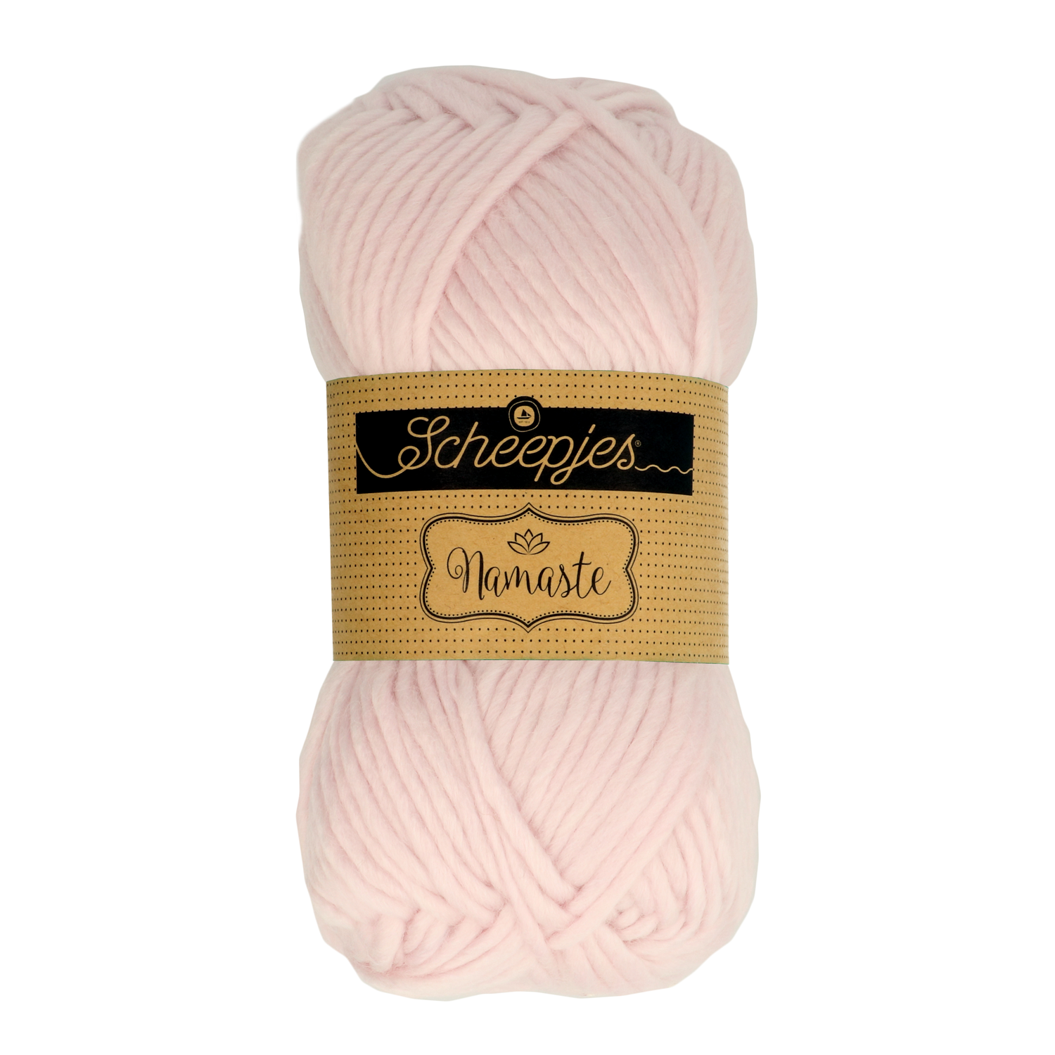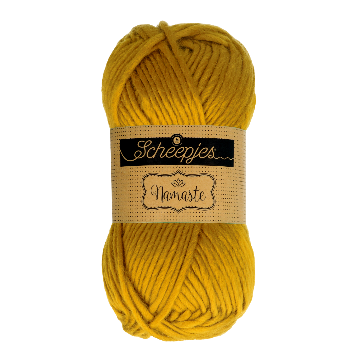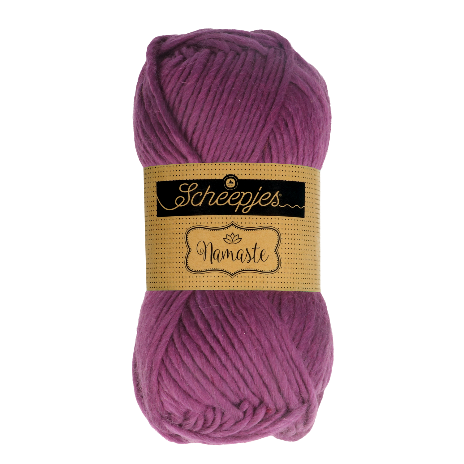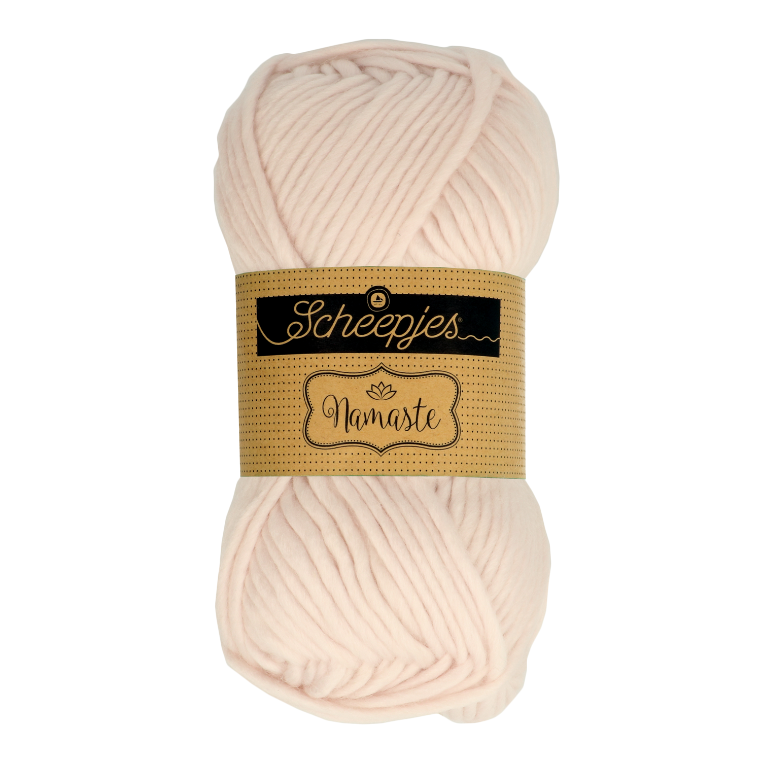 Scheepjes introduceert 34 kleuren van de nieuwe Namaste-lijn. Elke kleur is zorgvuldig gekozen om harmonie en eenheid in je projecten te brengen. Namaste is een dik, stevig maar zacht garen, bestaande uit 50% scheerwol en 50% acryl. Elke kleur is vernoemd naar een yogahouding. Het garen heeft een subtiele glans die het licht reflecteert, waardoor elk brei- of haakwerk een innerlijke gloed van voldoening krijgt wanneer het project voltooid is!