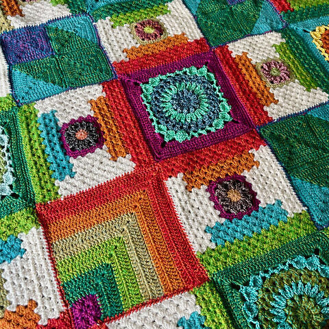 De Prismalux-deken combineert twee prachtige thema's: de tijdloze charme van quiltblokken en de speelse schoonheid van regenbogen. Elk gehaakt vierkantje is op zichzelf al een lust voor het oog, en samen vormen ze een opvallende, aantrekkelijke deken. Je vindt het gratis patroon op de website van Rachele of je kunt een advertentievrije PDF kopen op Ravelry .