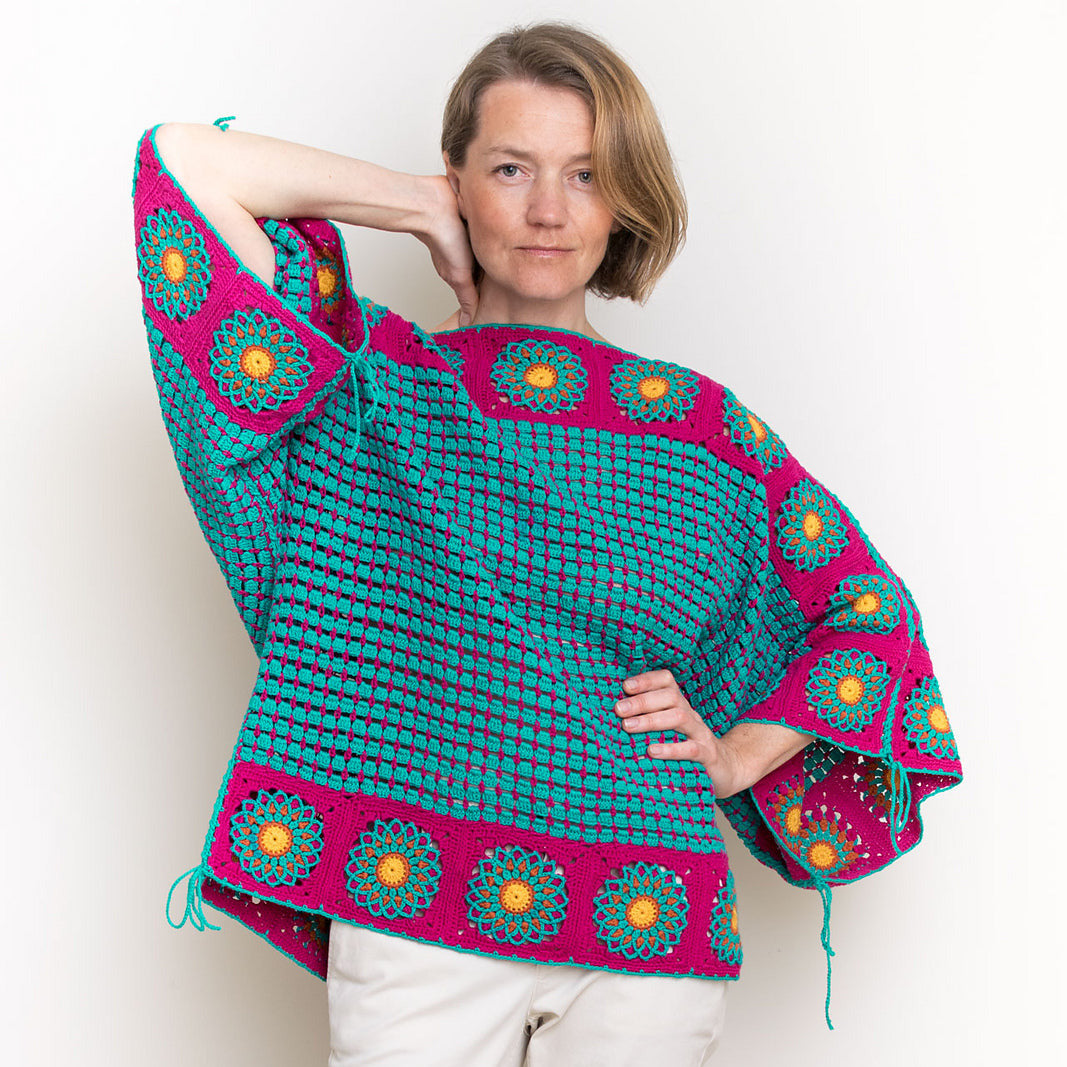 Dit haakpatroon maakt deel uit van de Serenum MAL die plaatsvindt van 30 juni tot en met 21 juli. Het patroon toont een vest dat, met een kleine aanpassing, ook als trui gedragen kan worden. Zo wordt ieders inspanning om een ​​kledingstuk te haken dubbel beloond! Het losvallende ontwerp van de trui/het vest bestaat uit een lijfje in bloksteek met een rand van vrolijke gehaakte mandala-motieven. Het haakpatroon is hier beschikbaar.
